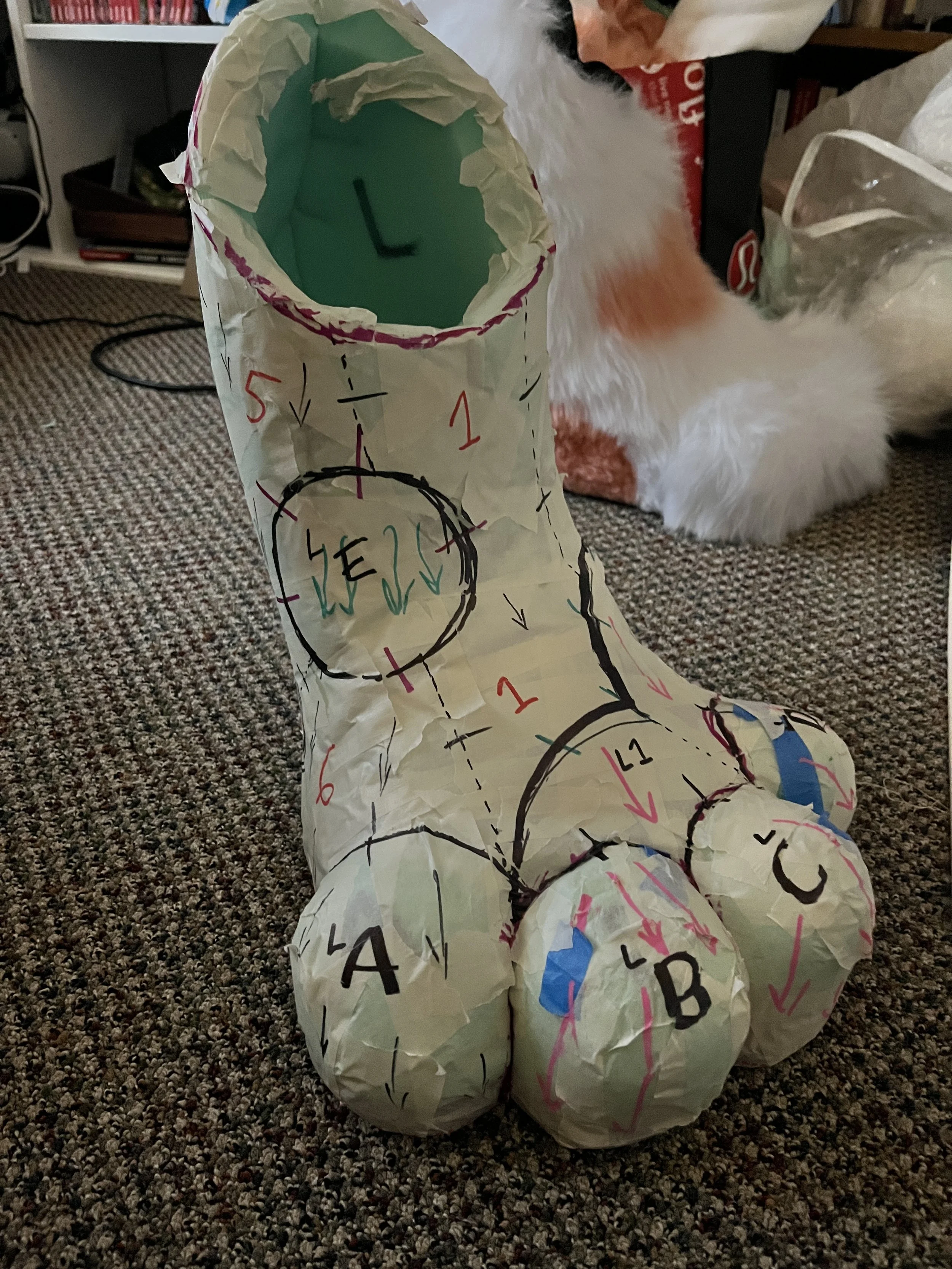 I TOOK MY TIME WHEN CRAFING MY FIRST FURSUIT. AS I WAS NEW TO THE FANDOM, I USED THIS PROJECT TO FIND MYSELF AND FIND MY FURSONA. I DID NOT HAVE A CONCRETE DESIGN GOING IN, ONLY AN ABSTRACT VISION OF WHAT I WANTED IN MY HEAD.